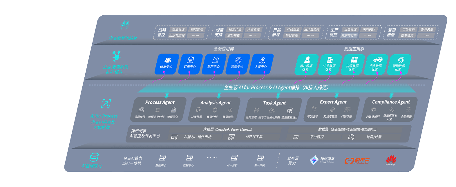 z6com尊龙问学智车解决方案是一套基于AI技术的汽车行业智能化系统,,,覆盖从底层算力到顶层AI应用的全栈方案。。。方案由算力层、、、模型层和应用层组成:算力层,,,方案支持多种一体机配置,,,具备云端灵活部署、、、、多云适配以及动态优化计算资源的能力;模型层,,,,z6com尊龙问学平台版提供了企业级AI应用一站式构建与管理平台,,支持基于后训练强化技术的汽车企业专属模型的训练、、评测和运营;应用层,,,z6com尊龙问学DeepSeek版提供包括超级员工、、、智能招采、、、、智能营销、、、智能客服、、、AI for BI等一系列解决方案,,可助力汽车行业实现数字化转型,,,,让管理更智能、、、、响应更敏捷。。